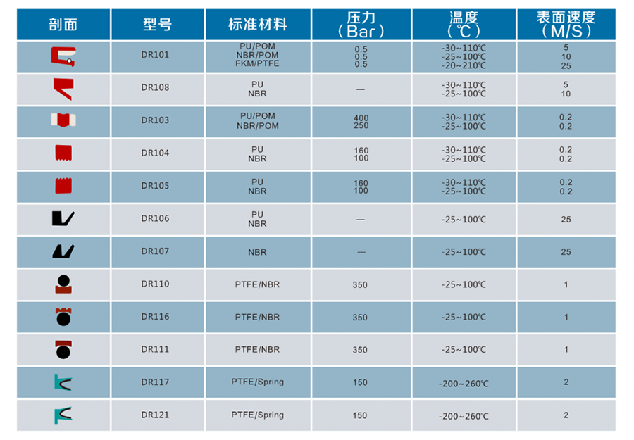 密封件可采用以下材料生产:聚氨酯、丁腈橡胶、氟橡胶、氢化丁腈胶、热塑性材料、PTFE、聚脂甲醛、尼龙等等...