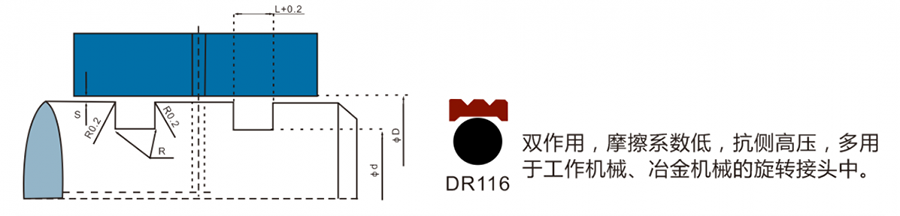 双作用,摩擦系数低,抗侧高压,多用于工作机械、冶金机械的旋转接头中。
