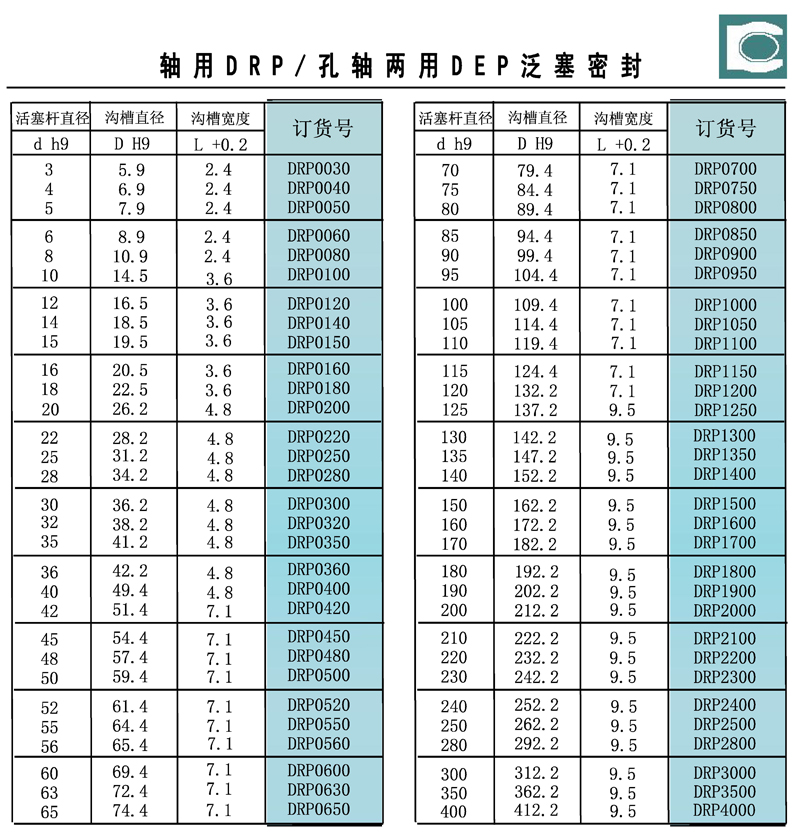 产品: 轴用DRP/孔轴两用DEP泛塞密封